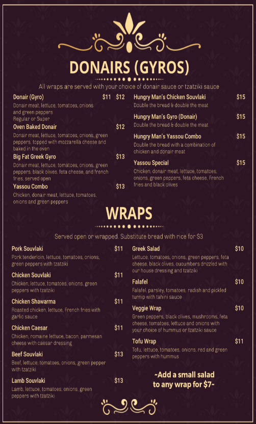 Welcome to Yassou Souvlaki & Donair, a culinary gem nestled in Fredericton, New Brunswick. This inviting eatery brings the heart of Greece to your plate with an array of mouthwatering dishes that capture the essence of Mediterranean flavors.
